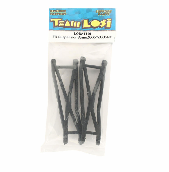 his is a set of two replacement front suspension arms from Losi. These arms attach to the front pivot block, and hold the camber blocks.
