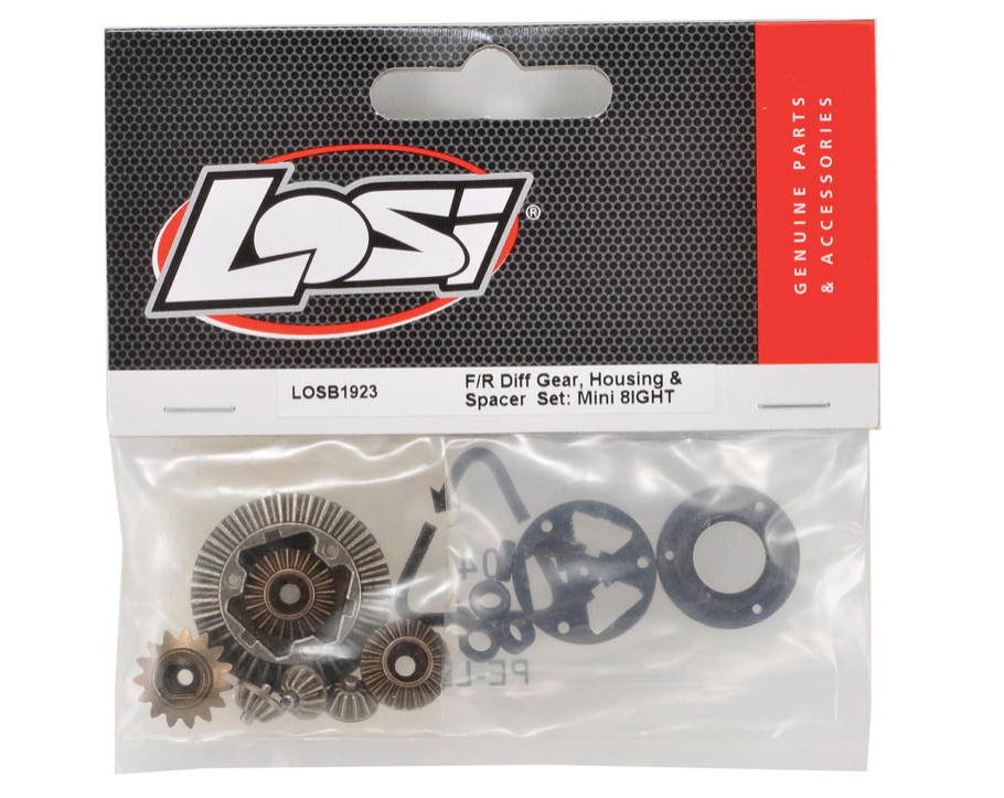 This is a replacement Losi Front/Rear Differential Gear Set with Housing & Spacers, and is intended for use with the Losi Mini 8IGHT.